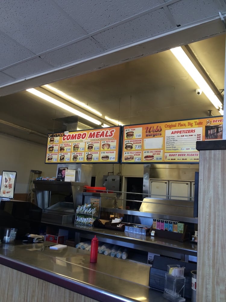 I don't write reviews but I've been going to the one on Yosemite for 15 years and haven't had one complaint. It's owned buy a nice Christian Asian man. If you ever want a old fashion juicy burger with nice hot fries, Webs is the place. I recommend trying the Vanilla shake. You won't be disappointed.