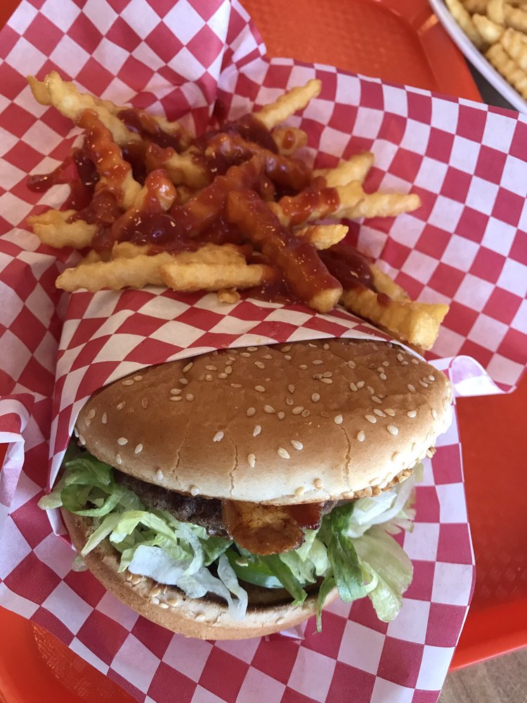 The burgers were awesomely done! my favorite the bacon cheese and the fries were so crisp and delicious, for a very good price, can't beat that, great quality and affordable price. love it! love it! love it!